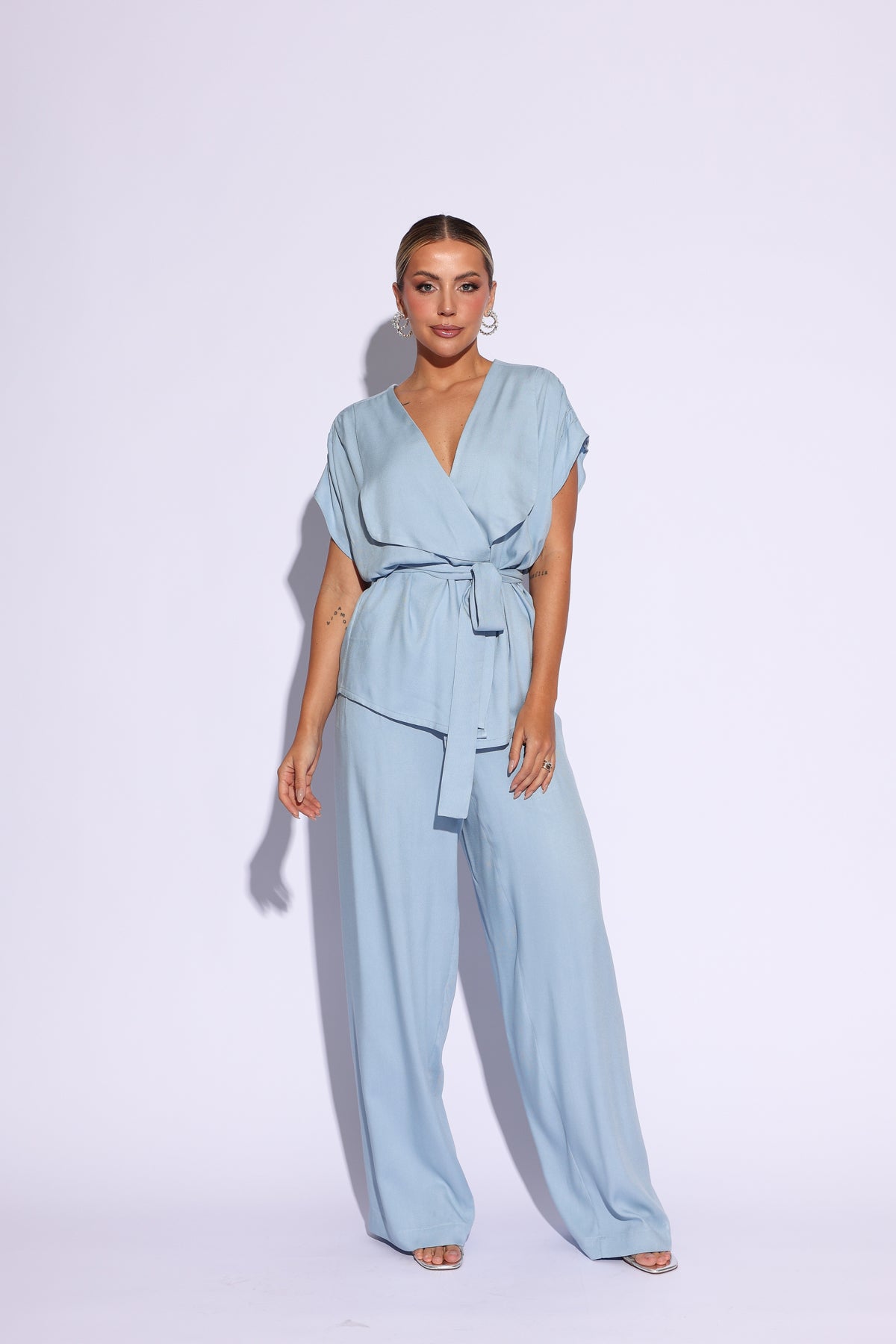 CALÇA PANTALONA DE CÓS DE ALTURA INTERMEDIÁRIA E FECHAMENTO LATERAL COM ZÍPER INVISÍVEL. POSSUI PREGAS FRONTRAIS.